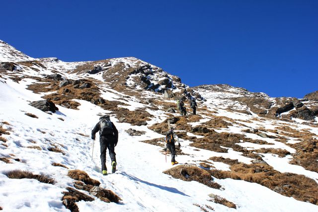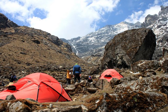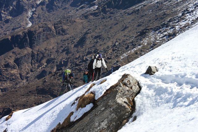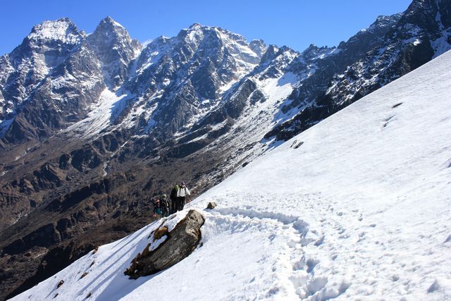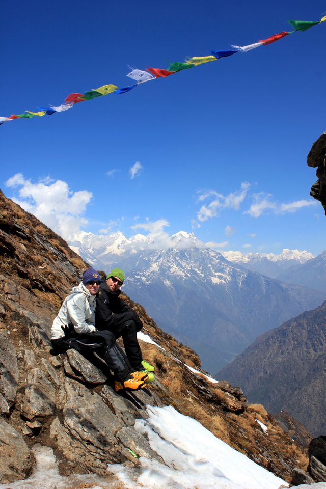 I dag har vi verkligen haft en fantastisk dag. Strålande väder och makalösa vyer. Dagen började 07:30 med storskor och isyxa då vi skulle upp för de ca 700 höjdmetrarna som det är upp till toppen av passet. Väl på toppen var vyerna hänförande och vi såg berg så långt ögat nådde – bland annat Cho Oyu 8 201 möh.